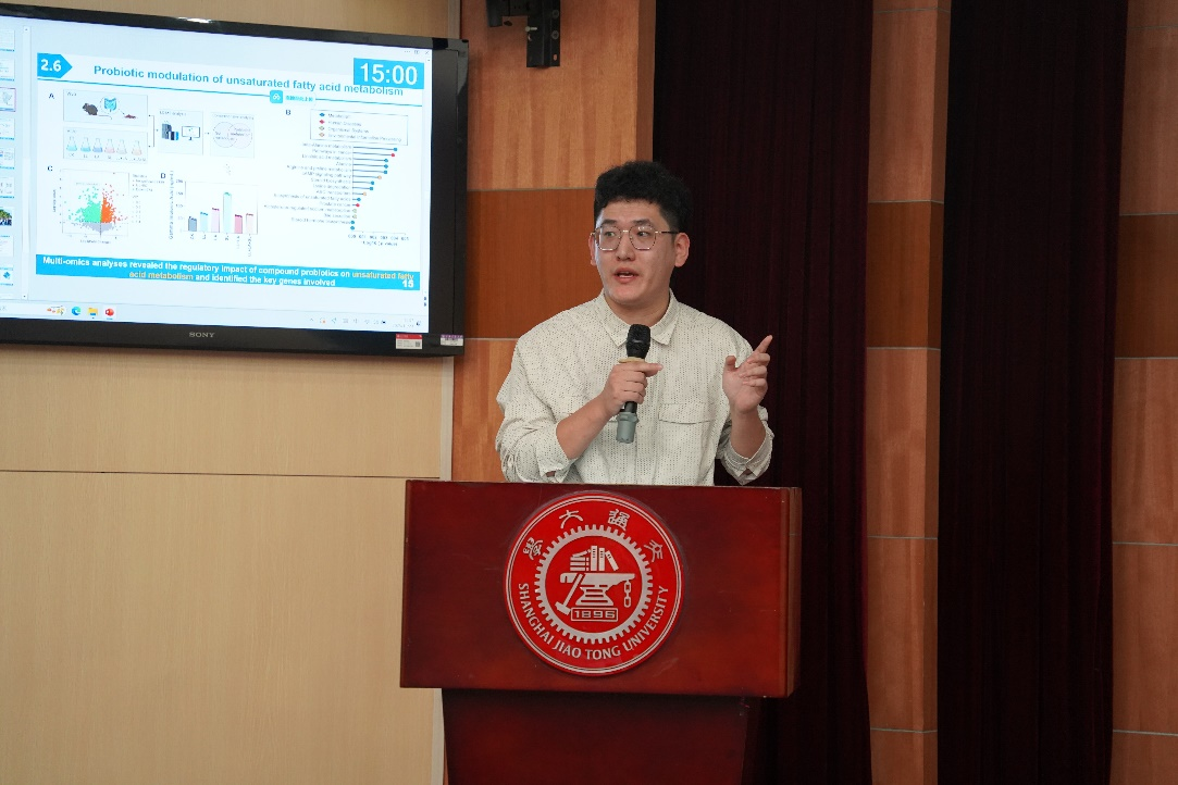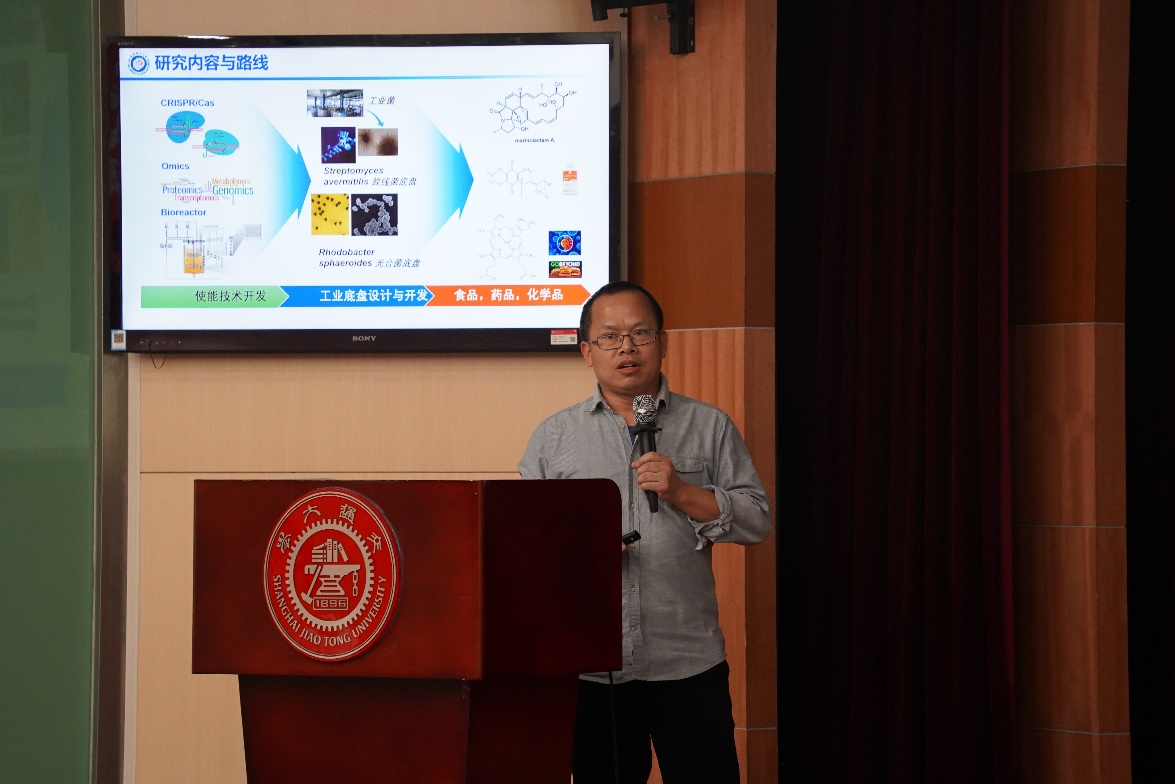 特邀报告环节,中国科学院微生物研究所王为善研究员作了题为“‘代谢-调控’协同重塑次级代谢药物细胞工厂”的学术报告,华东理工大学生物反应器工程国家重点实验室谭高翼教授分享了“CRISPR/Cas使能技术驱动的血红素及卟啉化合物的生物制造”的最新研究成果,在场的教师与特邀专家展开了高水平的学术对话,同学们也积极参与互动研讨。