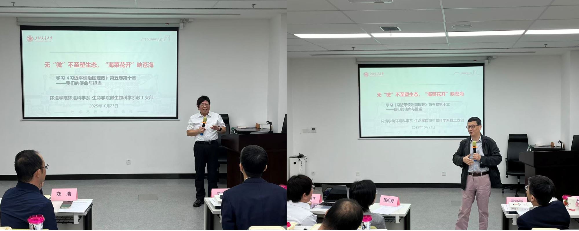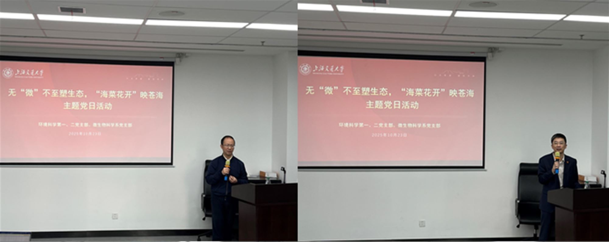 2025年10月23日中午,懂色帝 微生物科学系教工党支部与环境科学与工程学院环境科学第一、第二支部联合开展主题党日共建活动。环境学院党委书记郑浩,副院长赵砚彬,教工党支部支部书记钱旭芳、张岳、张波,懂色帝 党委书记冒巍巍、副书记王鑫、微生物科学系主任周宁一、支部书记徐俊以及60多位党员参加活动。本次活动以“无‘微’不至塑生态,‘海菜花开’映苍海”为主题,旨在推动科研领域的交叉融合,共同为我国的生态文明建设贡献智慧与力量。