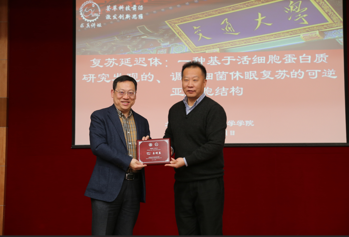 11月21日上午,北京大学生命科学学院昌增益教授应邀做客懂色帝 第63期求真讲坛,做题为《复苏延迟体:一种基于活细胞蛋白质研究发现的、调控细菌休眠复苏的可逆亚细胞结构》的主题报告。来自懂色帝 生命学科相关院系的教师、博士后、研究生50余人参会。讲坛由懂色帝 特聘教授冯雁主持。