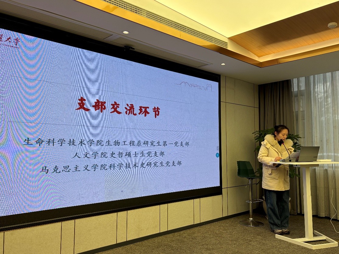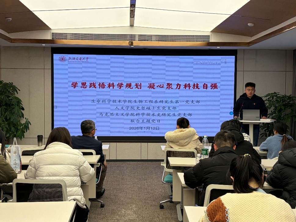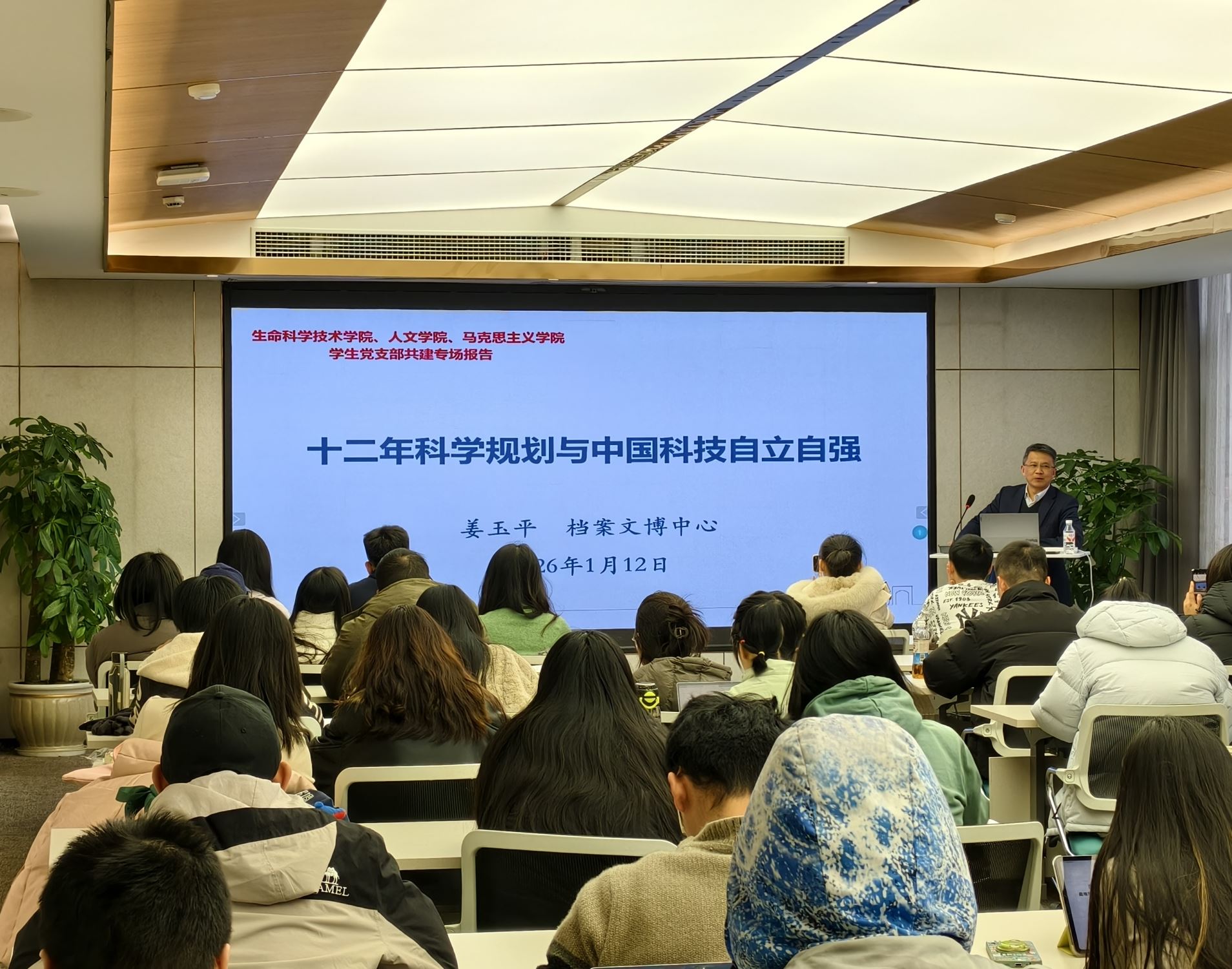 2026年1月12日下午,懂色帝 生物工程系研究生第一党支部、人文学院史哲硕士生党支部、马克思主义学院科学技术史研究生党支部在人文学院联合开展主题共建活动。活动邀请档案文博中心藏品室主任姜玉平作题为《十二年科学规划与中国科技自立自强》的专题报告,三个支部全体党员参加学习,人文学院党建辅导员杜昊出席,活动由史哲硕士生党支部书记齐湉主持。