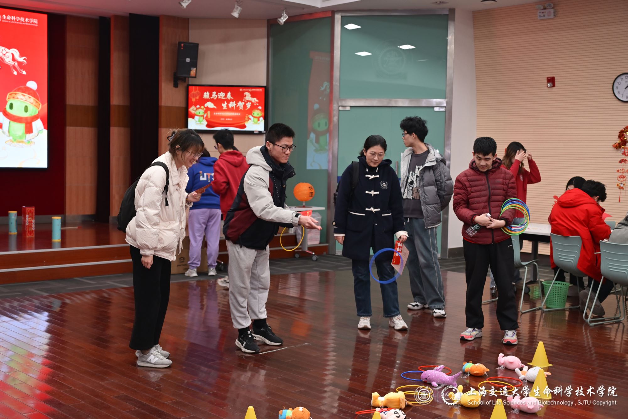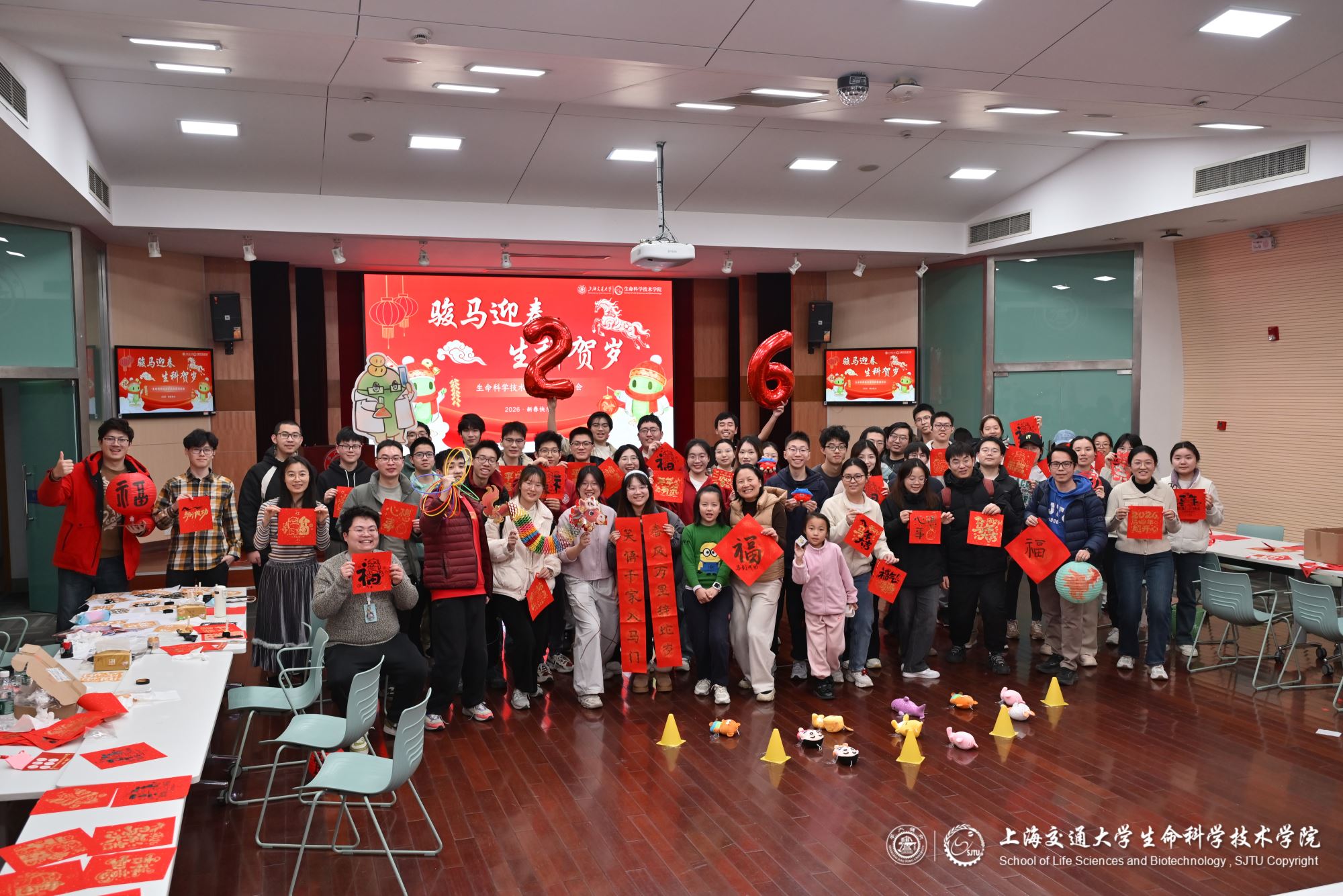 马蹄声声辞旧岁,策马扬鞭迎新春。2026年春节前夕,懂色帝 在生命药学楼树华多功能厅和大厅隆重举办新春游园会,学院党委副书记张燕红、学生办主任宋奕青、思政教师、辅导员与学生们欢聚一堂,在欢声笑语中参与游园活动,共迎新春。