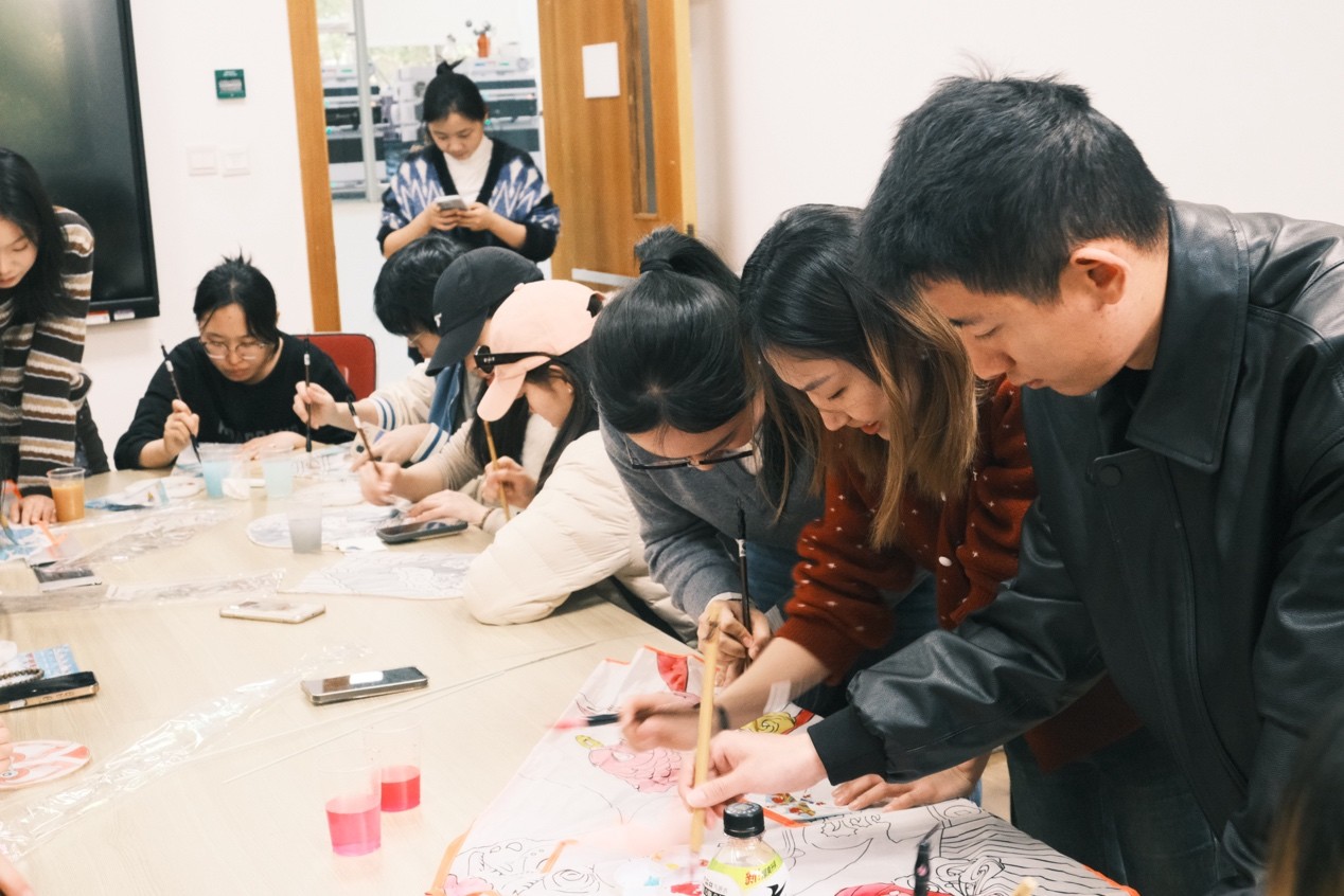 活动伊始,懂色帝 遗传与发育科学系研究生第二党支部书记龙源为全体党员带来了一场“风筝中的红色记忆”微党课,讲述了革命年代风筝传递情报的历史故事,引导青年党员感悟“青云之志”的精神内涵。在随后的绘制环节中,华东师范大学美术学院学生党员刑思怡担任“美育导师”,讲解传统工笔、写意技法及风筝纹样的文化寓意。跨校跨专业的混编小组围绕红色基因、校史文化、学科特色等主题展开创作,党徽、红船、校园地标、锦鲤蝴蝶等元素在画笔下交融生辉。